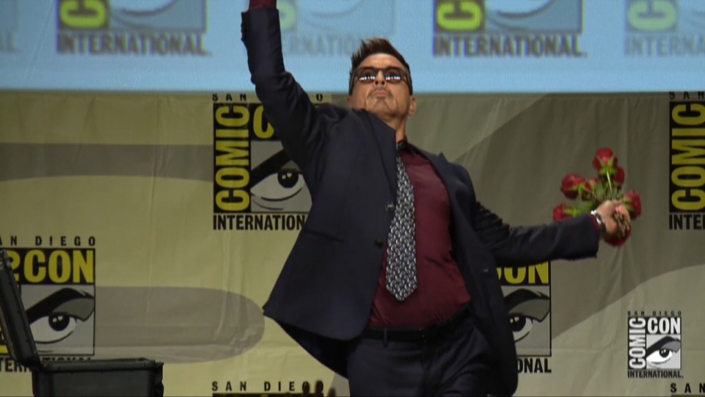 The all star lineup of ‘Avengers: Age of Ultron’ lead by a happy, dancing flower throwing Robert Downey Jr. sat down at Comic-con to talk to the press. Listen in.