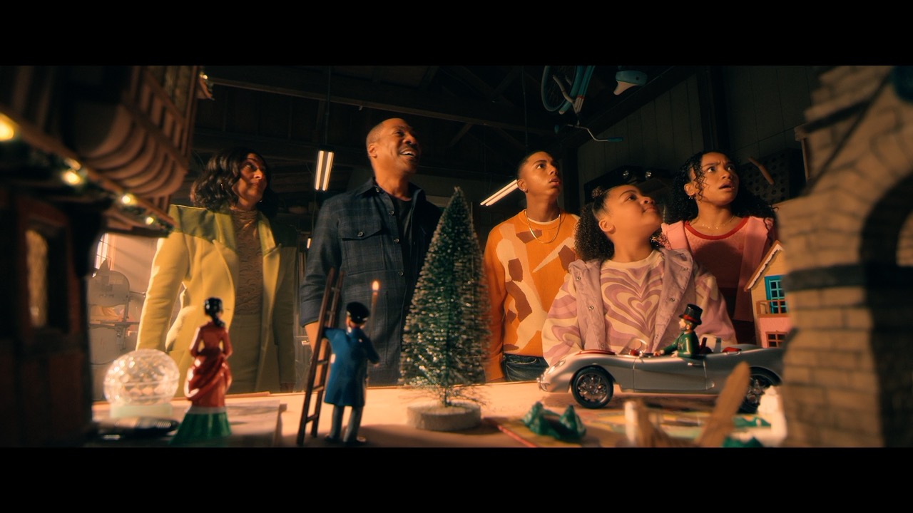 Star actor Eddie Murphy who plays Chris Carver in “Candy Cane Lane” introduces his family to a group of singing elves. Check it out.