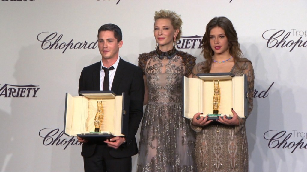 A beautiful Cate Blanchett handed out two special trophies at the Cannes Film Festival in France to Adele Exarchopoulos and Logan Lerman for extraordinary emerging talent.