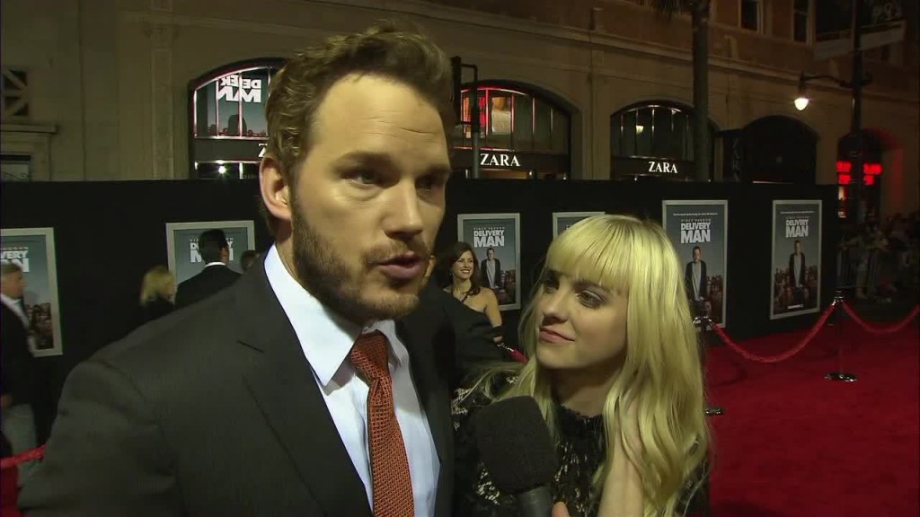 Chris Pratt is on the red carpet at the premiere of “delivery Man” with his famous wife Anna Faris. She finally cuts in to say how proud of him she is.