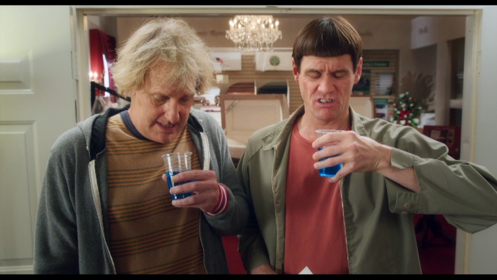In one of many very funny scenes from ‘Dumb And Dumber To’ Jim Carrey (Lloyd) and Jeff Daniels (Harry) offer their help and take a drink before leaving. Check it out.