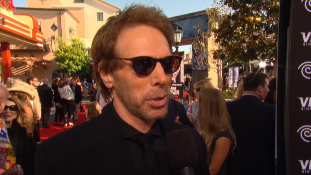 Mega action movie maker Jerry Bruckheimer brings together Armie Hammmer as “The Lone Ge r” And Johnny Depp as “Tonto” in the new action flick “The Lone Ranger”. He is on the red carpet at the premiere talking about the film, the stars and the audience.