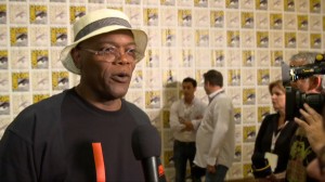 Samuel L. Jackson is "Nick Fury" in "Captain America: The Winter Soldier". He is on the red carpet at Comic-Con...