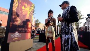 At the “Black Panther: Wakanda Forever” world premiere in her interview, Letitia Wright says she is proud of her castmates...