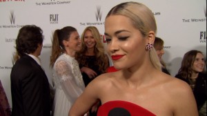 Rita Ora is looking hot and stunning in red on the red carpet at The Golden Globes Weinstein Company after...