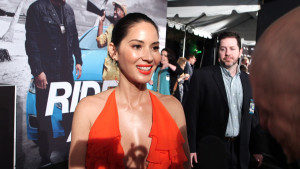 A stunning Olivia Munn is at the world premiere of 'Ride Along 2' chatting on the red carpet about her...