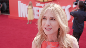 At the UK premiere for 'Incredibles 2' Holly Hunter is on the red carpet talking about how this movie hit...