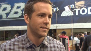 Star Ryan Reynolds is on the red carpet talking to us at the premiere of the animated f amily film...