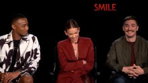 Smile movie stars Sosie Bacon (Dr. Rose Cotter), Kyle Gallner (Joel) and Jesse T. Usher (Trevor) explains what it is...