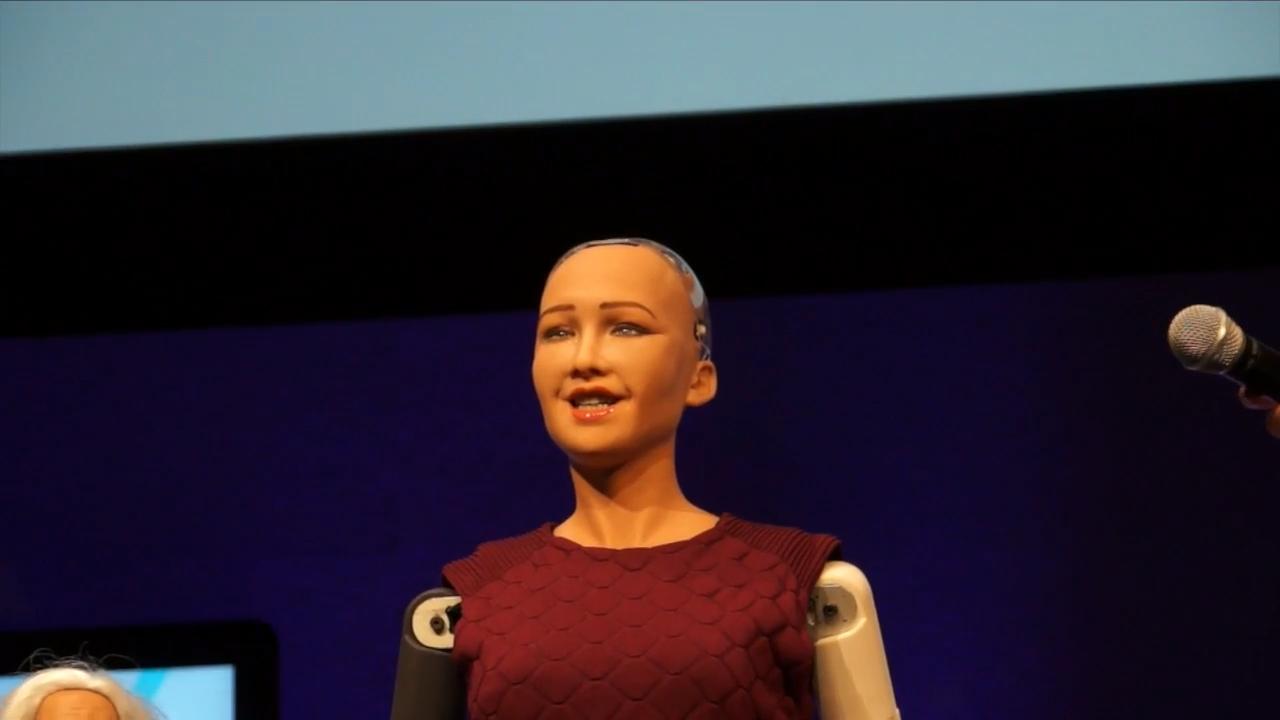 A very real and lifelike robot ‘Sophia’ tells us she loves TV and for a moment she seems to not remember why until a couple of laughs and the mention of ‘Tool Academy’. Would you like to sit and watch TV with your Robot as inventor David Hanson has the ability to do. Amazing.